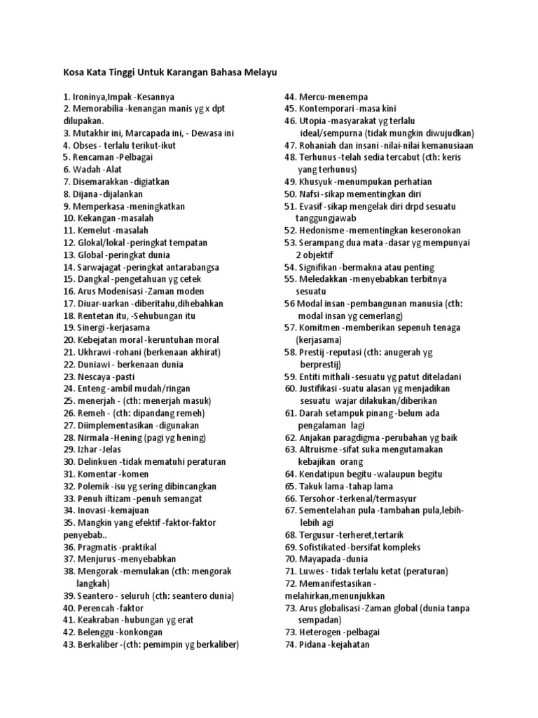 Kosa Kata Tinggi Untuk Karangan Bahasa Melayu Pdf