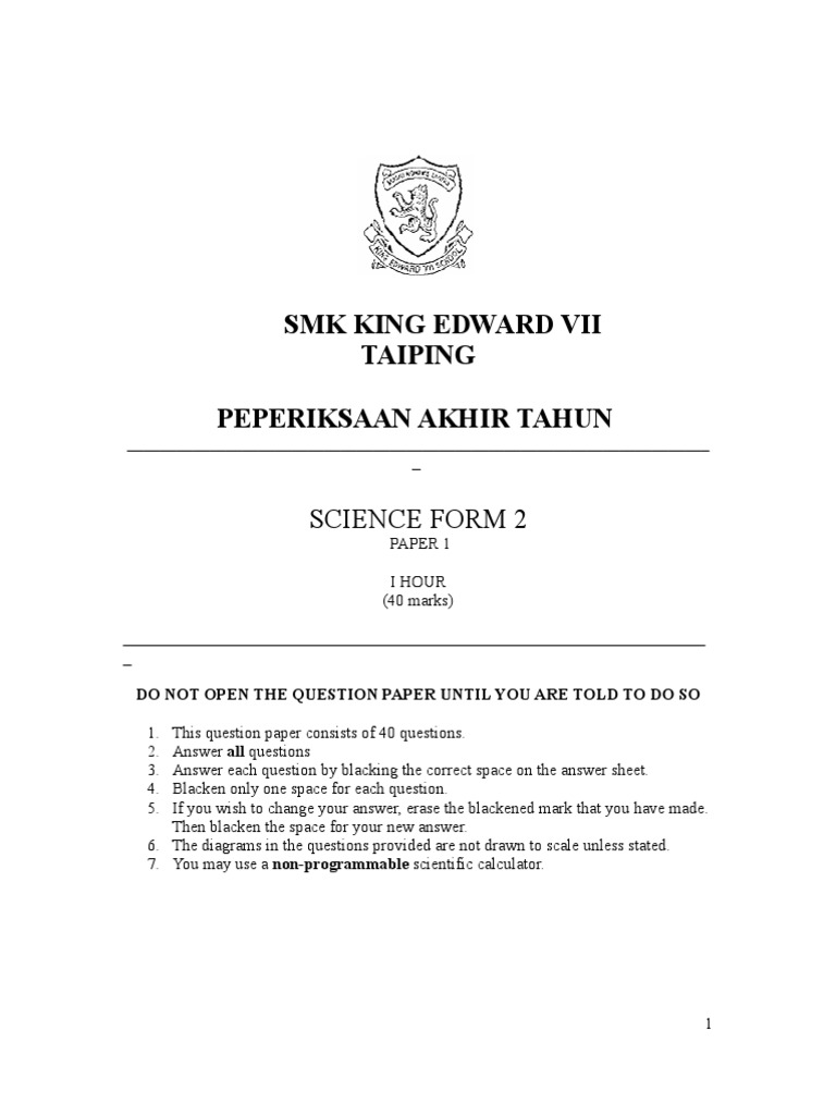 Bank Soalan Peperiksaan Akhir Tahun 2019 Tingkatan 2
